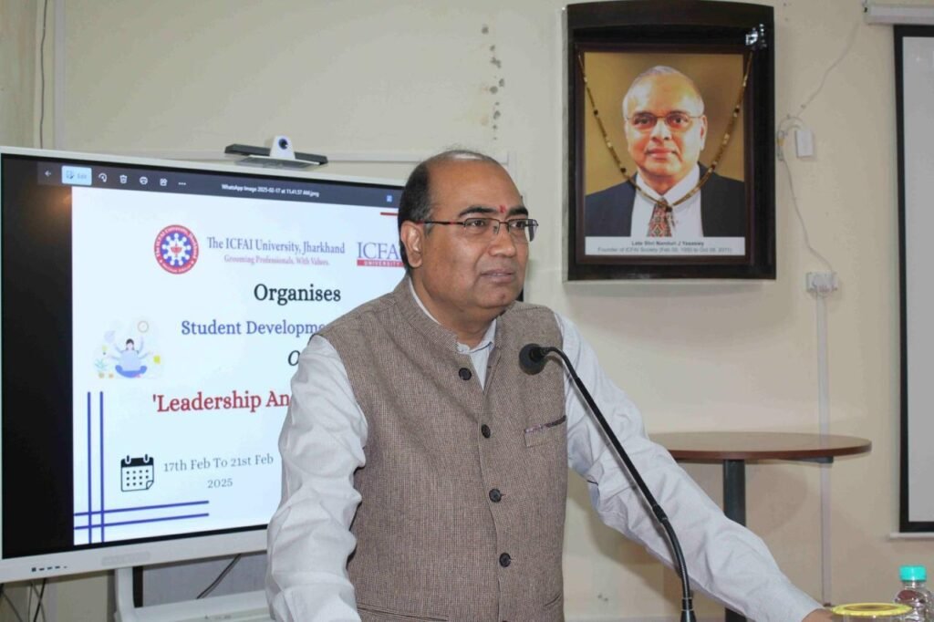 इक्फ़ाई विश्वविद्यालय झारखंड में “नेतृत्व और आत्म दक्षता” पर छात्र विकास कार्यक्रम का उद्घाटन किया गया। छात्र विकास कार्यक्रम का उद्घाटन मुख्य अतिथि प्रोफेसर (डॉ.) दीपक कुमार श्रीवास्तव, निदेशक, भारतीय प्रबंधन संस्थान, रांची ने किया। उन्होंने छात्रों को 3 आर- प्रासंगिकता, कठोरता और जवाबदेही पर ध्यान केंद्रित करने का सुझाव दिया। उन्होंने सीआई- सह-बुद्धिमत्ता के महत्व पर प्रकाश डाला।