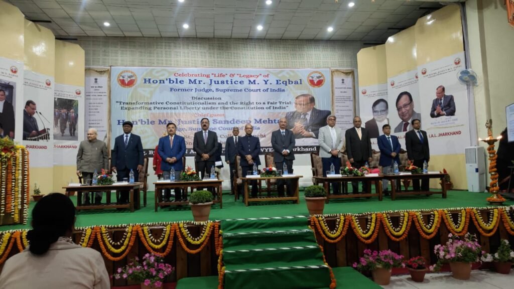 रांची : संत जेवियर्स कॉलेज के ऑडिटोरियम में इंडियन एसोसिएशन ऑफ लायर्स, झारखंड के अंतर्गत सर्वोच्च न्यायालय के पुर्व न्यायाधीश जस्टिस एम वाई एकबाल के जीवन और विरासत के उपलक्ष्य में एक सेमिनार का आयोजन किया गया. कार्यक्रम की शुरुआत अफाक रशीदी तथा सुभाशीष रसिक सोरेन के द्वारा किया गया। कार्यक्रम में आए हुए अतिथियों का बुके देकर स्वागत किया गया और कार्यक्रम की शुरुआत दीप प्रज्वलन के साथ हुई।दीपा प्रज्वलन के बाद संविधान के पाठ को पढ़ा गया ।उसके बाद शुरुआती भाषण फादर रॉबर्ट प्रदीप कुजुर प्रिंसिपल सेंट जेवियर्स कॉलेज ने दी । स्वागत भाषण रिटायर्ड जस्टिस हाई कोर्ट रत्नाकर भेंगरा ने दिया ।कार्यक्रम का परिचय ए के रसीदी ,महासचिव इंडियन एसोसिएशन आफ लॉयर्स ने दी। उसके बाद सुप्रीम कोर्ट के जज संदीप मेहता ने कार्यक्रम को विस्तार से बताया। जस्टिस इक़बाल ने विधिशास्त्र के क्षेत्र में एक लंबी लकीर खींची है। “फेयर ट्रायल” की पक्षता में उनका अविस्मरणीय योगदान रहा है।