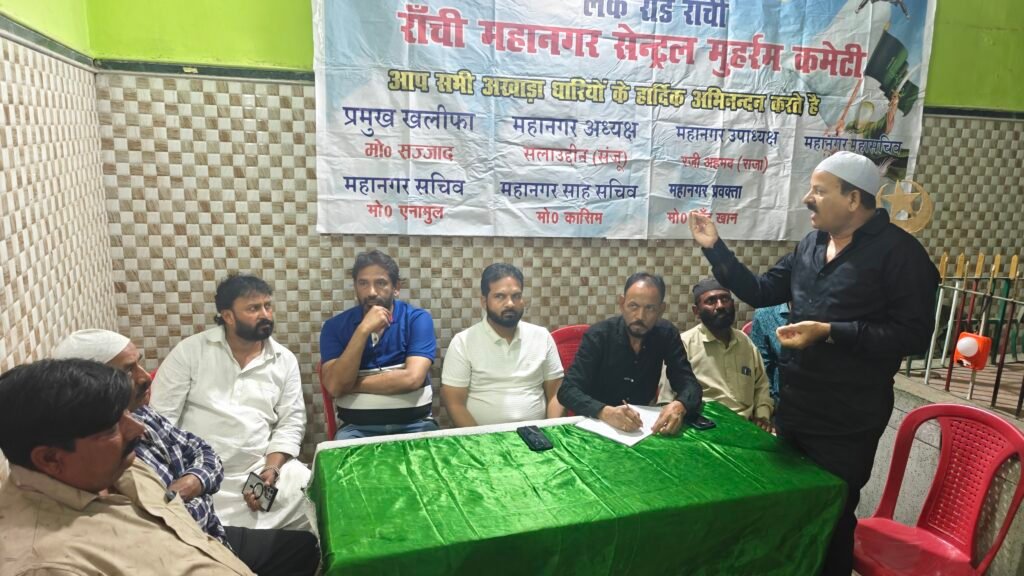 रांची : लीलू अली अखाड़ा ने इस वर्ष मोहर्रम जुलूस को लेकर पारंपरिक उत्साह और धार्मिक आस्था के साथ जुलूस निकालने का फैसला लिया है। अखाड़ा के प्रमुख खलीफा मोहम्मद सज्जाद ने बताया कि हर वर्ष की तरह इस बार भी मोहर्रम का जुलूस पूरी श्रद्धा और गरिमा के साथ निकाला जाएगा। जिसमें जारी गाइडलाइनों का पूर्ण पालन होगा। लीलू अली अखाड़ा के अंतर्गत आने वाले सभी छोटे-बड़े अखाड़ों ने भी सर्वसम्मति से यह निर्णय लिया है कि वे भी जुलूस निकालते समय नियमों और दिशा निर्देशों का सख्ती से पालन करेंगे। इस महत्वपूर्ण निर्णय के अवसर पर अखाड़ा के प्रमुख खलीफा मोहम्मद सज्जाद ,महानगर सेंट्रल मोहर्रम कमेटी के अध्यक्ष सलाउद्दीन संजू, उपाध्यक्ष रजी अहमद (राजा), महासचिव मोहम्मद शकील, सचिव मोहम्मद एनामुल, सह सचिव मोहम्मद कासिम और प्रवक्ता मोहम्मद चांद खान, मो रब्बानी और विभिन्न अखाड़ों के खलीफा सहित कई पदाधिकारी एवं सदस्य उपस्थित रहे।