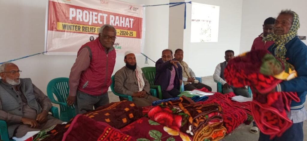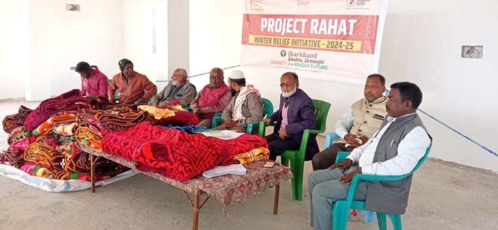 आज दिनांक 15/12/2024 को *सोसायटी फॉर ब्राइट फ्यूचर* के सौजन्य से कंबल वितरण *(Project Rahat winter relief Initiative-2024-25* ) थीम के तहत समारोह आयोजित किया गया है।
