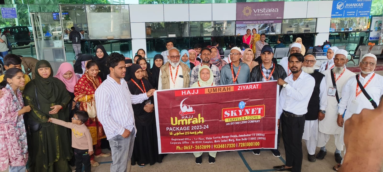 रांची : स्काईनेट टूर एंड ट्रेवल्स, मानगो गोल चक्कर के सामने, जमशेदपुर और पूरे झारखंड से 46 लोगो का जतथा उमराह के लिए सऊदी अरब बिरसा मुंडा एयरपोर्ट रांची से रवाना हुई। उमरा के लिए 11 नवंबर को रांची एयरपोर्ट से जत्था रवाना और वापसी 27 नवंबर को होगा । स्काई नेट अपने किए गए हर वादे को पूरा करता है। इस कारण से आज भी लोगों का इस पर विश्वास बना हुआ है। इन्हीं विश्वास के कारवां को आगे बढ़ते हुए 46 जायरीन जमशेदपुर,चाईबासा, चखधरपुर, बिहार और बंगाल और आसपास से बिरसा मुंडा एयरपोर्ट, रांची से मक्का रवाना हुए। इस मौके पर बड़ी संख्या में जायरीन और उनके परिजन एयरपोर्ट पहुंचे। मौके पर बोलते हुए स्काईनेट ट्रेवल्स के डायरेक्टर नैयर इकबाल सिद्दीकी ने कहा कि सभी ज़ायरीनो की मदद के लिए साथ में स्थानीय अनुभवी गाइड भी जा रहे. इस मौके पर रांची ब्रांच हेड अल इल्हान टूर एंड ट्रेवल्स के सैयद नेहाल अहमद समेत अन्य लोग मौजूद थे।